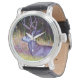 Uhr, Klassische Damenuhr mit schwarzen Lederarmband
