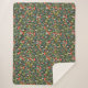 Weiße, grüne und rote Holzmotive, die von Shelby Allison entworfen wurden und winzige Gnome, Pilze, Blume und Blätter enthalten.
