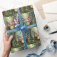 Zwei fröhliche Gnome halten eine große Uhr und stehend in einem sonnigen Wald, der sich rätselt