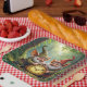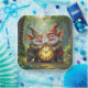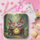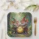 Zwei fröhliche Gnome halten eine große Uhr und stehend in einem sonnigen Wald, der sich rätselt