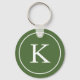 Circle Schlüsselkette mit einem Wald grünen Kreis und weißen Monogramm Initial.