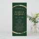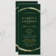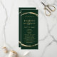 Dieses Hochzeitsprogramm umfasst ein goldfarbenes Imitat mit einem eleganten Ampersand und einer einfachen Kalligraphie mit einem waldgrünen Hintergrund.