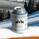 Gedenken Sie Ihre Hochzeit im eleganten Waldstil mit diesen Gastgeschenk Hochzeit Dosenkühlen, die ein Hirschpaar (ein Buck und ein Doe) mit einem Single-Herz verbinden. Personalisieren Sie die Namen des Paares und das Hochzeitsdatum unten. Ein gestreifter Hintergrund in winterblau und weiß rundet dieses rustikale Winterwunderland-Aussehen ab.
