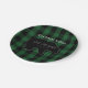 Rustikale Papierplatten der schwarzen und grünen, trendy Babyjungen-Dusche des Büffels karierten schaffen Ihren eigenen Karo-Babyduschenentwurf des personalisierten, rustikalen Holzfällers karierten mit einem Waldwaldtierthema. Karierter Hintergrund des schwarzen und grünen Büffels mit Schatten des schwarzen Bären in der Mitte der Aufmerksamkeit. Bär wird mit Namen und "Babyparty" in den wunderlichen grauen Buchstaben besonders angefertigt, die handgeschrieben schauen. Datum unten. Liest "danken Ihnen" an der Spitze in zusammenpassendem Grau, Hauptstadtsbuchstaben. Kundenspezifischer schwarzer und grüner karierter Babyduschen-Teller bringt rustikale Waldtier-Babyduschenarten und Jungenbabyduschen-Partyversorgungen zusammen. Die koordinierenden Papierservietten des karierten Bären, die in unserem Zazzle.com/angela65 verfügbar sind, speichern sowie andere Jungenbabyduschenversorgungen und Waldthemadekor.
