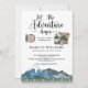 Lass das Abenteuer, mit der Geburtstagsparty Waldland Camping Einladung für jeden Alterscampout, mit Abenteuer Camping Ausrüstung, mit Kompass, Karte, Laterne und Berge und Wald im Hintergrund. Sie können dies auch für das Camping eines Mädchens Party anpassen.