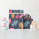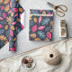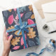 Woodland Winter Watercolor Blätter Weihnachtsverpackungspapier aus Ricaso - mit einer Fülle von Blätter in Rosa, Gold und Grün auf dunkelblauem Hintergrund - ein wunderschönes Wintergeschenkpapier aus Holz