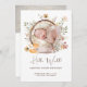Niedliche und einzigartige Waldtierfreunde in Aquarellwald ergänzen Ihre Geburtsankündigung mit einer einzigartigen Kalligraphie-Schrift und Foto gegen eine Vielzahl von Wildblumen. Eine perfekte Geburtsstatusankündigung und Dankeschön-Karte für einen Jungen oder ein Mädchen. Passen Sie Ihre Daten einfach an, um sie zu Ihrem eigenen zu machen.