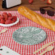 Waldlandschaft Grünes Kaninchen Blumenblättern Pappteller