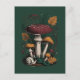 Eine schöne, vintage-style botanische Illustration mit einem majestätischen Fliegenpilz, einer Schnecke und Herbstblättern auf dunklem Hintergrund. Perfekt für Natur- und Waldliebhaber.