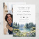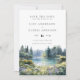 Diese elegante Waldsee-Wildblumen-Wasserfarben-Hochzeit-Einladungskarte kann mit Ihren Informationen in moderner Typografie und einem besonderen Foto auf der Rückseite personalisiert werden. Entworfen von Thisisnotme
