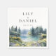 Diese Waldsee-Wildblumen-Hochzeitspapier-Servietten können mit Ihren Informationen in moderner Typografie personalisiert werden. Entworfen von Thisisnotme
