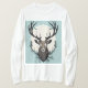 Stilisierte Abbildung eines Hirschkopfes mit großen Geweih-Leuchtern, überlagert auf einem runden Hintergrund, der eine Waldszene suggeriert. Das Design ist modern und grafisch.
