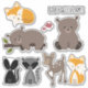 Aufkleber, die ein Waldtierthema einschließlich zwei Fuchs, zwei Bären, ein Stinktier, Waschbären, Rotwild und Pilze kennzeichnen. Personifizieren Sie den Namen.