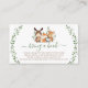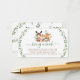 Personalisieren Sie diese niedlichen farbenfrohen Waldbücher für die Babyumrandkarte mit Ihren eigenen Worten einfach und schnell. Dieses Design zeigt die rustikalen Aquarellfarben Grüntöne, Blätter Blattwerk und bezaubernde Waldtiere: Fuchs, Hirsch, Eichhörnchen, Kaninchen, Elche und Waschbär.
