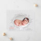 Copyright © 2018 Socialite Designs Inc. & LICENCORS - Diese wunderschöne Foto-Geburtsankündigung Karte hat Holzbänke auf der Vorderseite und ein Foto-Bereich umgeben von einem einfachen Kranz. Die Hintergrundfarbe ist ein weiches Taubengrau. Auf der Rückseite sind Waldtiere mit einem Polka-Dot-Hintergrund.