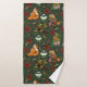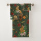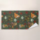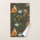 Ein roter Fuchs, Eule, Kaninchen, Lunamotten, Pine Martin mit Herbstblättern, Kürbissen, Blume und Eicheln - alles in einem tiefen grünen Rahmen