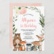 Waldtiere Mädchen 1. Geburtstag Party Einladung