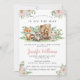 Aquarell niedlich rosa Blumenarten Waldtiere Mädchen Dusche Einladung. Auf dem Weg zur Babydusche ist ein kleiner wilder.