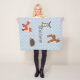 Sweet Blue Baby Fleece Decke, mit weißem Quadreildmuster und bezaubernden Grafiken von einer Fahne, Fuchs, Igel und Hase. Personalisieren Sie den braunen Text. Eine tolle Geschenkidee.