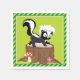 Dieses Design ist mit einem grauen, schwarz-weißen Stumpf stehend, der an einem Baumstumpf neben rot-weißen Pilzen befestigt ist. Der Hintergrund ist ein grünes, von diagonalen Streifen gesäumtes Quadrat, das in zwei Grüntönen gehalten ist. Suchen Sie in meinem "Woodland Animals Party" Collection Clip art by Prettygrafik design nach koordinierenden Geburtstagsartikeln etsy.com/shop/Prettygrafikdesign