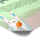 Geschlechtsneutrale Babydusche Ein Beispiel für ein Aquarellwald: Fuchs mit Heidelbeere in Pfoten, Bär mit Himbeere, Igel mit Birne, Hase mit Karotte. Der Aquarellhintergrund ist mehrfarbig.