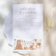 Eine niedliche Babyberatungs- und -vorhersagungskarte mit einer bezaubernden Sammlung von Waldkreaturen und -elementen, darunter ein Hasen, eine Eule, ein Waschbär, ein Eichhörnchen, ein Fuchs, ein Hirsch, ein Igel, eine Ladybug, ein Rotkehlchen, Kiefernzapfen, Pilze, Blume, Brühe und Beeren. Die Gäste können ihre Geburtsvorhersagen, Ähnlichkeitsvorhersagen und Ratschläge für die neuen Eltern schreiben. Diese Visitenkarte wurde erstellt, um unsere Kollektion von Waldtieren & Bearly Wait Baby Shower zu ergänzen. Sehen Sie sich die auf dieser Seite verlinkte Sammlung an, um das vollständige Set zu sehen. Fühlen Sie sich frei, um mir mit allen Fragen, ich werde gerne helfen!