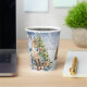 Diese bezaubernde Tasse besticht durch eine farbenfrohe Waldlandschaft mit Waldtieren, die Wintergetränke im Schnee genießen.