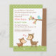 Eine niedliche Waldtierdusche zum Thema Babydusche zum Feiern mit Mami zu sein! Diese Einladung kommt mit einer niedlichen Mutter- und Kinderhirschpaarung, einem Doe und Fawn. Rote Tulpen und weiße Blume schmücken den Grasstreifen. Auf dem Baumzweig steht ein blauer Vogel mit bunten Blätter. Die umgekehrte Seite ist das Polka-Punktmuster. Personalisieren Sie einfach Ihre Party-Daten.