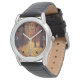Uhr, Klassische Damenuhr mit schwarzen Lederarmband