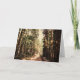 Wir vermissen dich! Karte mit einem schönen Foto eines Waldwegs, der in Richtung Sonnenlicht führt.