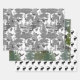 Waldtiere und Kiefernbäume in Farbe und Schwarz-Weiß für zwei Blätter und Schwarz-Elch-Silhouette auf Weiß.