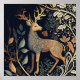 Die wilden Tiere leben im Wald. Und Rehe leben auch dort. Eine Abbildung eines Hirsches im Blumenmuster-Hintergrund. Der Tierdruck ist abstrakt und folkloristisch. Quadratformat.