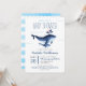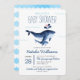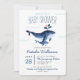 Aquarellwale unter der Sea Baby Dusche Einladung. Das Design besticht durch ein elegantes, modernes Textlayout. Um erweiterte Änderungen vorzunehmen, wählen Sie bitte unter Personalisieren dieser Vorlage die Option "Klicken Sie auf, um weitere Anpassungen vorzunehmen".