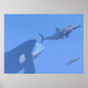 Wale und Megalodon unter Wasser - 3D-Darstellung Poster