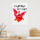 Ein großes Poster mit handgemalten Collage-Design eines roten Drachen und dem Slogan "Cymru am byth" (Wales Forever). Kann auch in ein "riesiges" oder "kolossales" Poster passen.