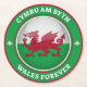 Ein patriotisches Design mit einer abgerundeten 3D Walisischer Fahne in einen äußeren Ring eingefärbt in walisischen Farben. Der obere Text ist keltischer Herkunft und übersetzt als Wales Forever. Der untere Text ist die englische Bedeutung des oberen Textes.