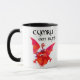 Eine weiße Tasse mit schwarzem Rand und Griff, mit einem roten Drachen und dem Slogan "Cymru am Byth" (Wales Forever!) umklammert. Für Rugby-Fans und alle, die Liebe Wales!