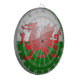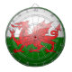 Walisisches Design-Dartboard mit rotem Drachenpassant und Hintergrund in Grün und Weiß.