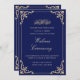 Luxuriöse islamische Walima Zeremonie Einladung. Diese Karte hat einen marineblauen Hintergrund mit einer Vintagen goldenen Dekoration in der Ecke des Randes. Dieses Produkt ist außer der arabischen Kalligraphie bearbeitbar. Auf der Vorderkarte befinden sich zwei elegante Script-Schriftart. Passen Sie alle Informationen an, die wie Namen, Datum und Adresse geschrieben wurden. Blank weiß ist ein Umschlag enthalten. HerLineForDesign.