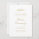 Walima islamische Hochzeitseinladung. Dieses elegante, minimale Kartendesign mit klassischen Flemisk- und Goudy-Roman-Script-Schriftart in Goldfarbe auf weißem Hintergrund. Personalisieren Sie die Namen der Braut und des Bräutigams, Datum und Ort, um die Einladung einzigartig für Sie zu machen. Sie können den Text auch auf der anderen Karte bearbeiten.