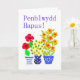 Eine hübsche Waliser-Geburtstags-Karte mit Töpfen hell farbigen Blumen, von einer handgemalten Papiercollage durch Judy Adamson. Wenn Sie den Text der vorderen Abdeckung geändert in jeder Hinsicht (z.B. ein anderes Alter, eine Person oder eine Sprache) möchten, treten Sie mit mir bitte durch meinen Speicher in Verbindung und ich bin glücklich, ihn sofort zu tun.
