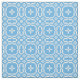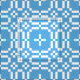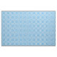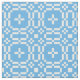 Ein schickes Gewebe mit einem Vierwegsmuster der traditionellen Waliser-Tapisseriemotive im Weiß auf einem Himmel-Blauhintergrund.