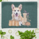 Zeigen Sie Ihrer unbeschwerten Seite diesen Feiertag mit unserem Walisercorgi-Welpen im Herbst-Geschirrtuch.  Fertigen Sie die Bilder und den Hintergrund besonders an. Entworfen durch www.zazzle.com/Corgigifts.com/