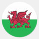 Große runde Aufkleber der Flagge von Wales, mit dem roten Drachen.