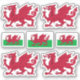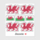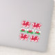 Vier individuell geschnittene Vinyl-Aufkleber mit Wales-Wappen und drei Aufkleber mit walisischer Flagge in der Mitte