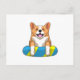 Walisischer Corgi im Schwimmen mit Brett Postkarte