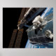 Der Astronaut der Europäischen Weltraumorganisation (ESA), Hans Schlegel, Spezialist der STS-122-Mission, arbeitet am neuen Columbus-Labor, während er an der zweiten planmäßigen Tagung der Mission für außerfahrzeugbezogene Aktivitäten (EVA) teilnimmt, während Bau und Wartung der Internationalen Raumstation fortgesetzt werden. Während des sechsstündigen, 45-minütigen Weltraumspazierens arbeiteten unter anderem Schlegel und der Astronaut der NASA, Rex Walheim, Missionsspezialist, daran, einen Stickstofftank zu ersetzen, der für den Druck des Ammoniak-Kühlsystems der Station verwendet wird.
