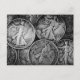 Genießen Sie dieses Schwarz-Weiß-Foto von Walking Liberty 50-Cent-Stückmünzen.