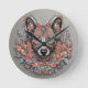 Wall Clock, 8" "Floral Majesty Wolf Clock" Runde Wanduhr