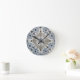 Wall Clock - Floral Designer Blue Grey Replica Runde Wanduhr